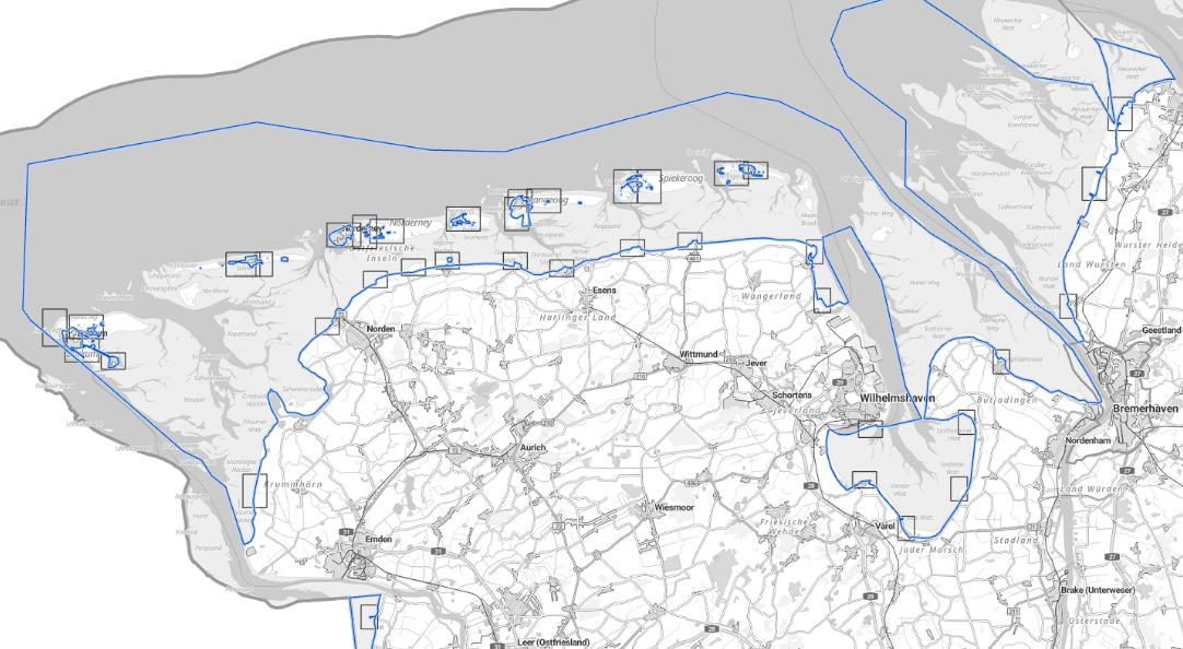 | Raumbezug von: Grossschutzgebiete in Niedersachsen | 5.411°/47.231° | 12.601°/55.507° |
